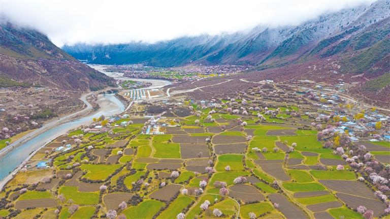 在西藏,美景多藏於(yu) 高山峽穀之中,鬥玉村便是藏於(yu) 喜馬拉雅山北麓的大美村寨。得天獨厚的環境滋養(yang) 了漫山遍野的野桃樹,每年三四月間,在桃花的映襯下,這裏成了花的海洋,宛如世外桃源。