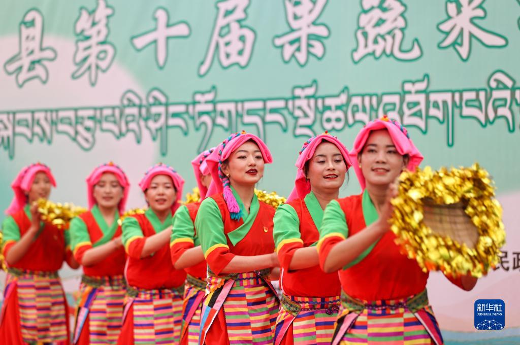 5月28日,居民在第十屆白朗果蔬采摘節上表演節目。新華社記者 薑帆 攝