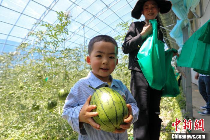 采摘節上,孩子們(men) 進入高原大棚采摘西瓜。 主辦方供圖