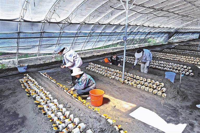 圖為(wei) 達孜現代農(nong) 業(ye) 產(chan) 業(ye) 園的技術人員在大棚內(nei) 查看靈芝長勢。 記者 旦增蘭(lan) 澤 攝
