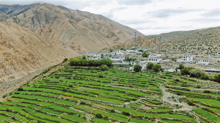 航拍普蘭(lan) 縣普蘭(lan) 鎮科迦村斜爾瓦組。 記者 洛桑旦增 攝