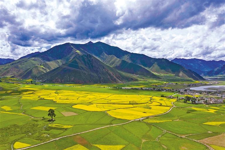 7月的墨竹,3萬(wan) 多畝(mu) 油菜花競相綻放,匯成金色海洋,蜂蝶飛舞,花香四溢。