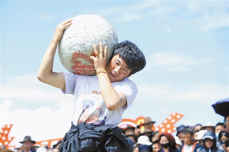 抱石頭比賽。記者 格桑倫(lun) 珠 攝