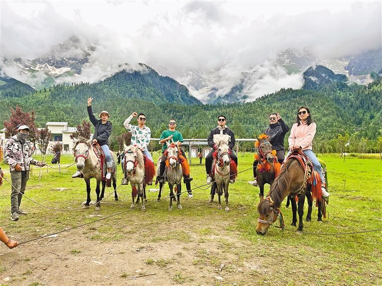 圖為(wei) 來自廣東(dong) 的遊客在康木村體(ti) 驗騎馬。記者 張猛 攝