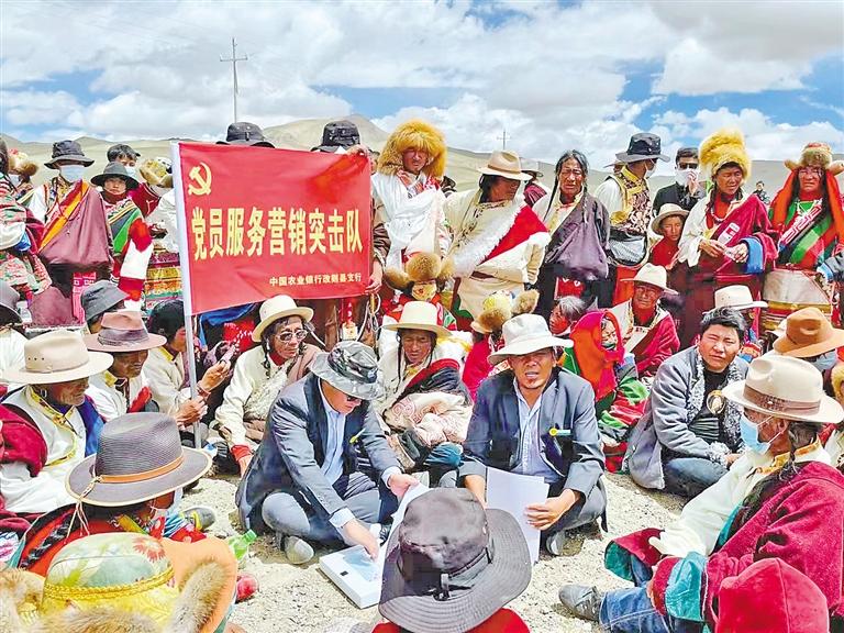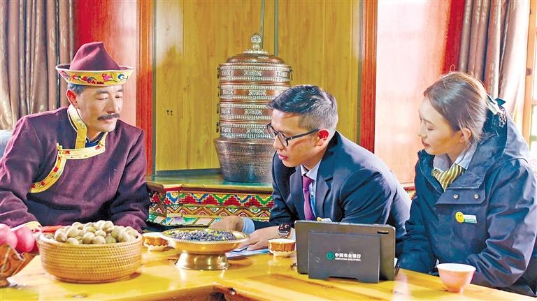 農(nong) 行西藏分行基層員工為(wei) 農(nong) 戶提供上門服務。