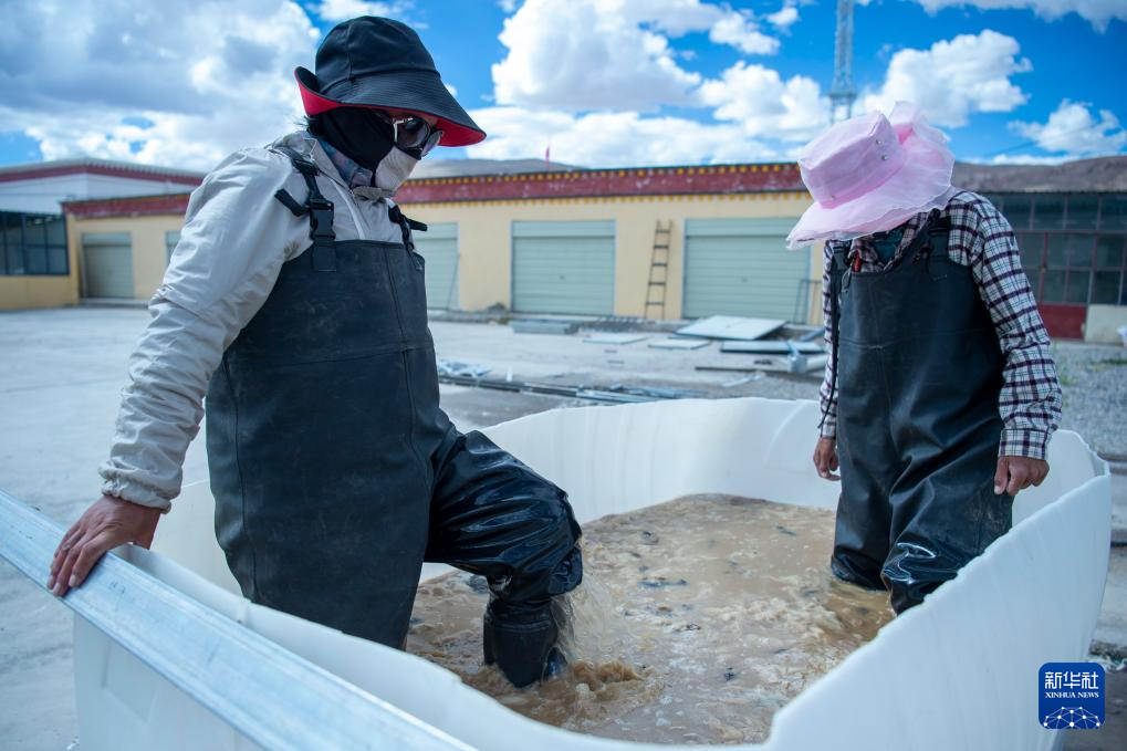 村民們(men) 在清洗羊毛(8月24日攝)。新華社發(旦增努布 攝)