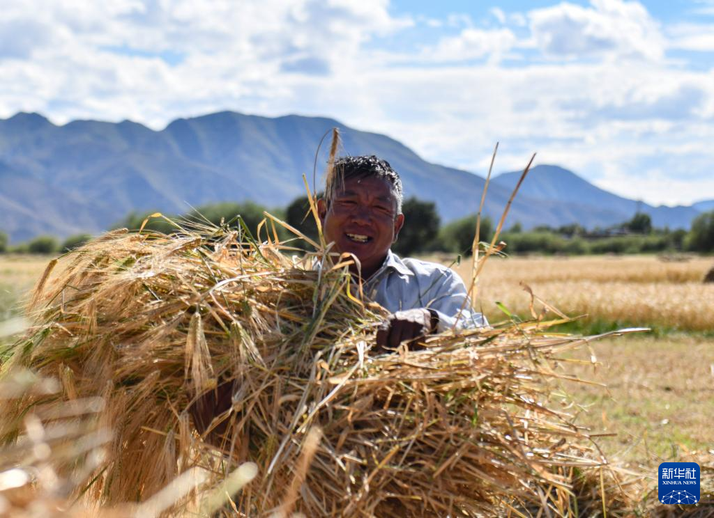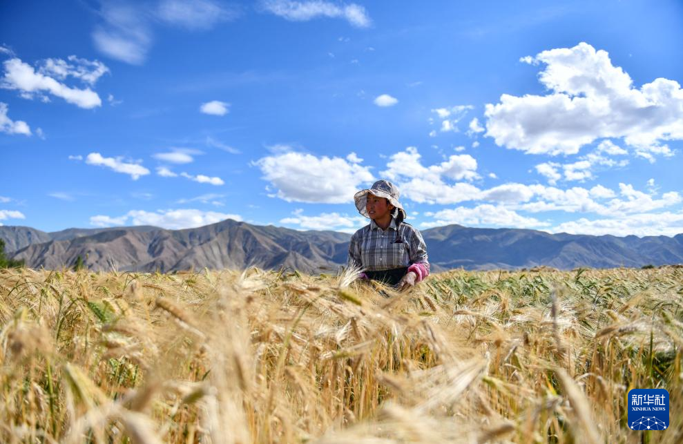 西藏日喀則市年楚河流域是西藏糧食的主產(chan) 區之一,今年雨水豐(feng) 沛,糧食長勢喜人,大地鋪金,農(nong) 民喜迎豐(feng) 收。