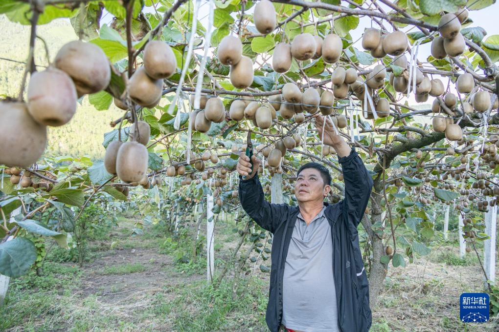 白鬆在西藏察隅縣下察隅鎮修理獼猴桃枝葉(9月3日攝)。新華社發(丁增尼達 攝)