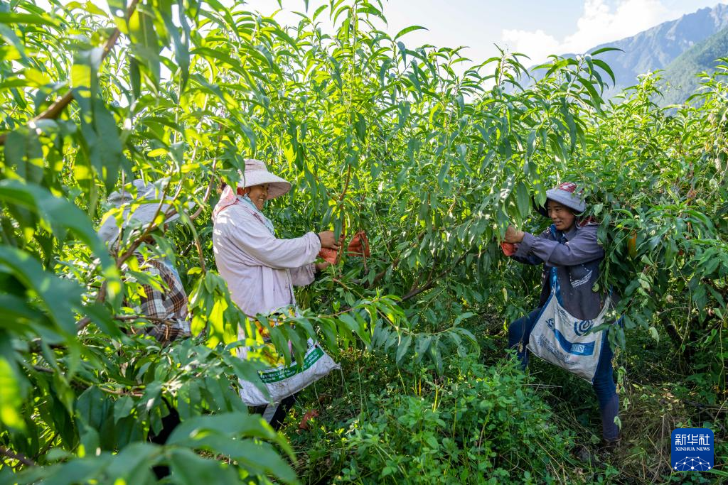 在西藏察隅縣下察隅鎮,當地村民正在采摘黃桃(9月3日攝)。新華社記者 孫非 攝