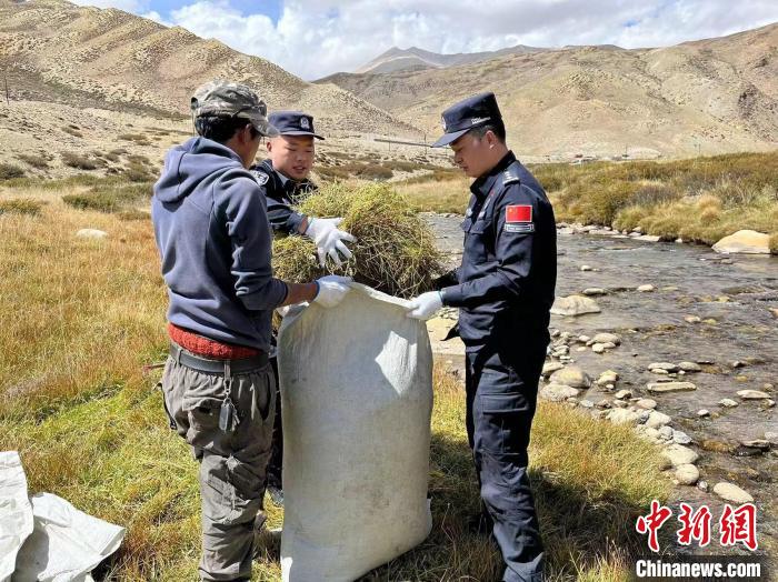 20日,在西藏阿裏地區劄達縣曲鬆鄉(xiang) 草場上,一眼望去處處是忙碌的身影,曲鬆邊境派出所移民管理警察和轄區民眾(zhong) 齊心協力,為(wei) 儲(chu) 存牲畜越冬度春飼草料辛勤勞作。