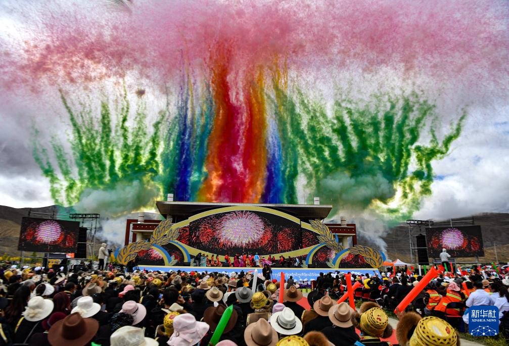 當日,2023年西藏山南中國農(nong) 民豐(feng) 收節暨隆子縣玉珞文化旅遊節開幕式在隆子縣舉(ju) 行。當地文藝工作者為(wei) 現場數千名農(nong) 牧民觀眾(zhong) 獻上精彩演出,共慶豐(feng) 收,歌頌家鄉(xiang) 。