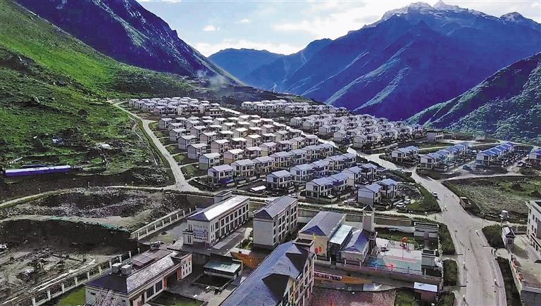 日喀則市定日縣絨轄鄉(xiang) 設施完善的邊境小康村一角。