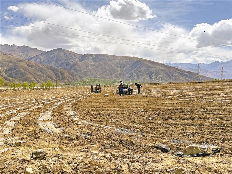 回憶起剛開荒時的情形,洛珠達瓦說:“我們(men) 每天組織公司全體(ti) 職工和村民30多人,以及多台挖掘機、破石機、拖拉機等機械設備,連續工作了1個(ge) 多月。地底石頭較多,機械設備用壞了好幾台。即使對土地進行了多次翻耕,但土地沙化依然嚴(yan) 重,無法種植莊稼。”
