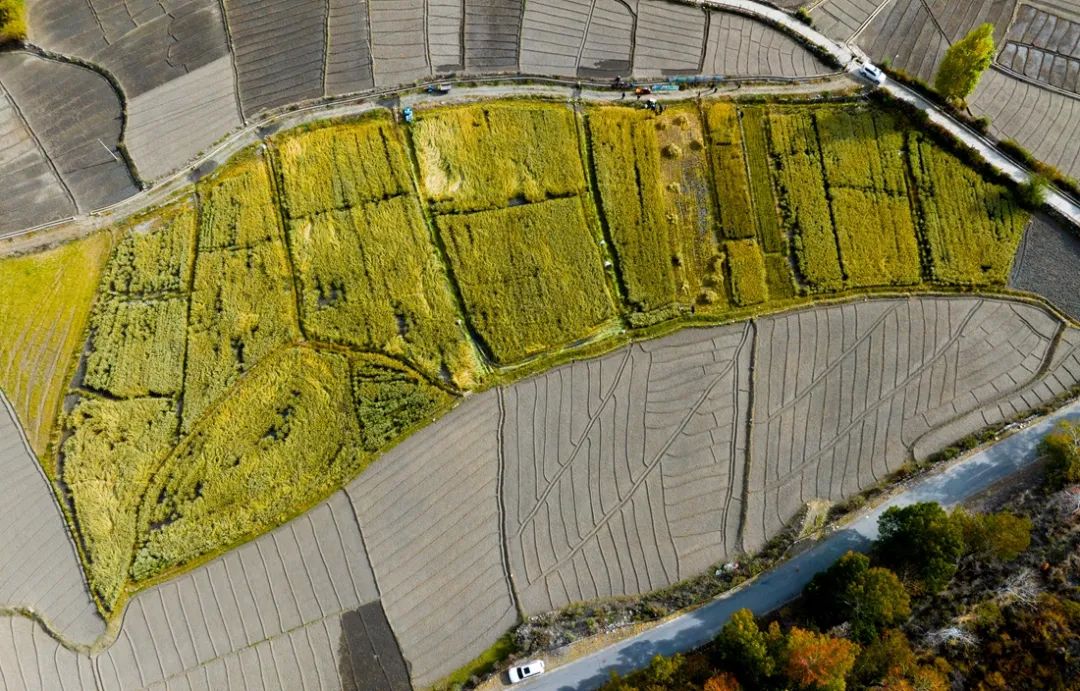 記者來到巴達村,放眼望去,稻田一片金黃,麥浪中群眾(zhong) 正揮舞著鐮刀,喜笑顏開地收割著親(qin) 手種植的穀物——一片20畝(mu) 見方的高原水稻。