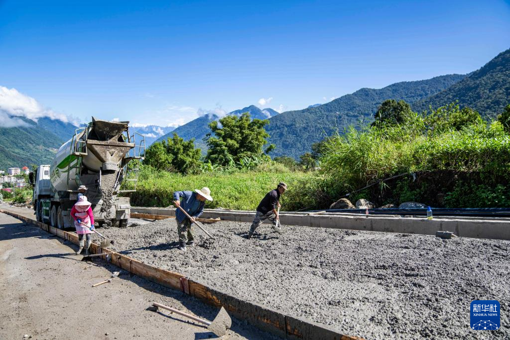 工人們(men) 在墨脫縣修築鄉(xiang) 村公路(2023年10月13日攝)。新華社記者 孫非 攝