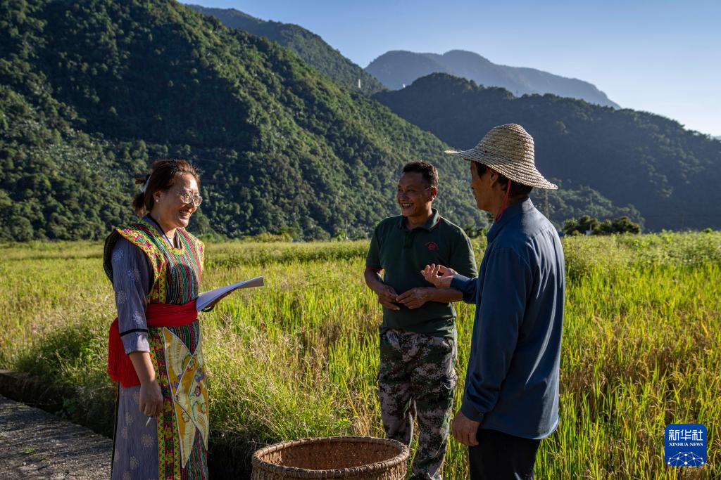 在墨脫縣德興(xing) 鄉(xiang) ,鄉(xiang) 黨(dang) 委副書(shu) 記白瑪曲珍(左)在田間調研(2023年10月13日攝)。新華社記者 孫非 攝
