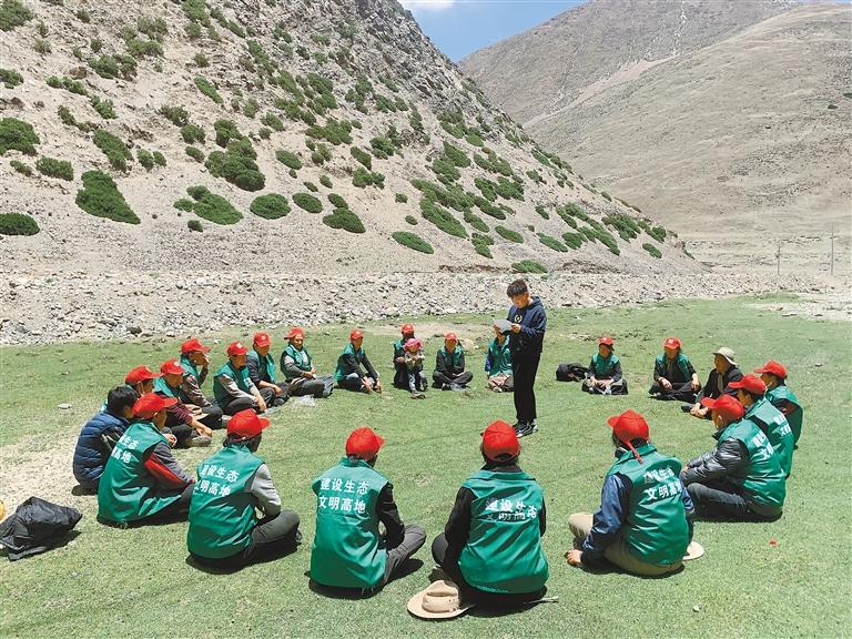圖為(wei) 美巴切勤鄉(xiang) 幹部向護林員宣講生態環境保護政策。 記者 楊小娟 攝