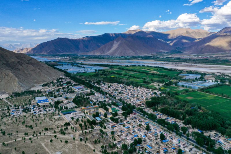 圖為(wei) 鳥瞰西藏自治區曲水縣南木鄉(xiang) 江村。田金文攝
