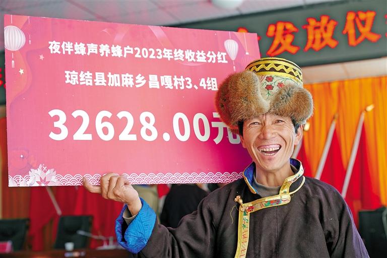 瓊結縣下水鄉(xiang) 下水村拿到了今年最高的收益金。該村村委會(hui) 主任索朗群培高興(xing) 地說:“養(yang) 蜂是一項非常有潛力的產(chan) 業(ye) ,不僅(jin) 給我們(men) 提供了一種新的現金增收渠道,也為(wei) 市場提供了優(you) 質的蜜蜂產(chan) 品。我希望有更多的人關(guan) 注和支持養(yang) 蜂產(chan) 業(ye) 的發展,為(wei) 我們(men) 農(nong) 牧民群眾(zhong) 增收創造更多機會(hui) 。”