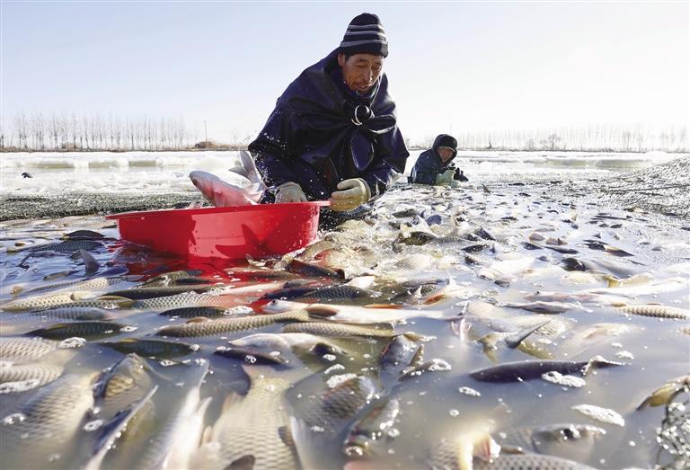 河北省唐山市豐(feng) 南區老鋪村的淡水魚養(yang) 殖戶在魚塘捕魚。 文圖均來自新華社