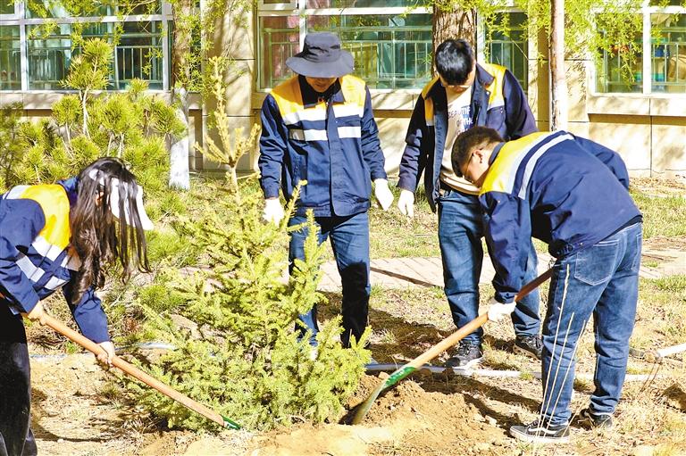 植樹現場,大家熱情高漲、幹勁十足,或兩(liang) 人一組,或三五人搭檔,分工合作,揮鍬挖坑、扶苗填土、夯土澆水。經過一番勞作,新培植的苗木紮根在沃土裏,迎風挺立,成為(wei) 春日一道亮麗(li) 的風景線。