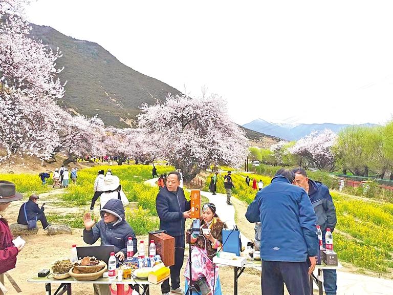 遊客在“次仁的家藏式體驗館”區域拍照打卡集章。林芝市職業技術學校學生在嘎拉村直播,宣傳推介桃花旅遊文化節、工布民俗風情及農特產品等。[詳細] -