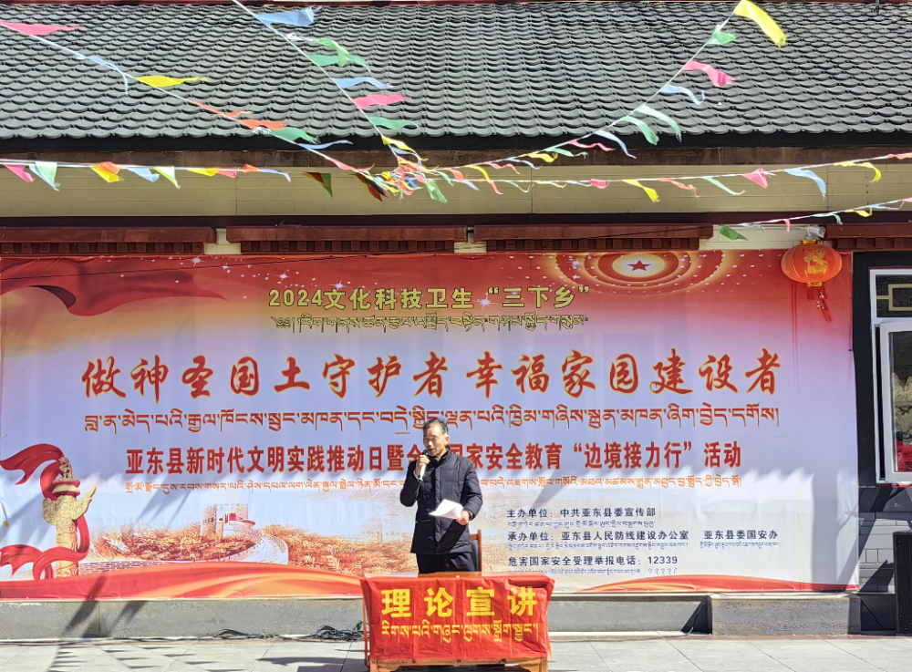 4月伊始,在“全民國家安全教育日”來臨(lin) 之際,亞(ya) 東(dong) 縣文化科技衛生“三下鄉(xiang) ”第三站來到了邊境村。此次活動由亞(ya) 東(dong) 縣委宣傳(chuan) 部、亞(ya) 東(dong) 縣國家安全人民防線建設領導小組辦公室、亞(ya) 東(dong) 縣委國安辦共同舉(ju) 辦,以“做神聖國土守護者、幸福家園建設者”為(wei) 主題,以文藝+宣講+服務的形式,開展了係列宣傳(chuan) 教育活動。活動首先對該村2024年第一季度邊境小康村“五星戶”進行了頒獎,通過表彰活動,進一步激發邊境群眾(zhong) 做神聖國土守護者、幸福家園建設者的決(jue) 心和信心。