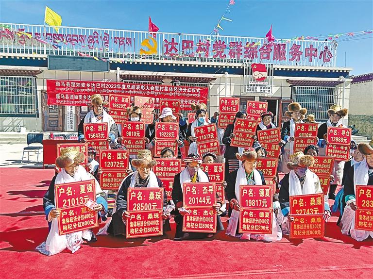 圖為(wei) 康馬縣涅如麥鄉(xiang) 達巴村分紅儀(yi) 式現場。