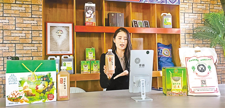 圖為(wei) 瓊結縣網絡主播直播帶貨瓊結縣農(nong) 特產(chan) 品。記者 汪純 攝