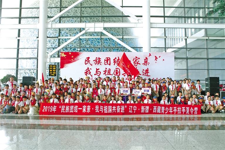 2019年“民族團結一家親(qin) ·我與(yu) 祖國共奮進”遼寧·新疆·西藏青少年手拉手夏令營開營儀(yi) 式現場。