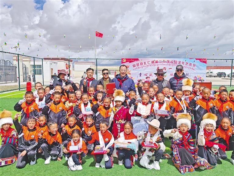 沈陽市第十批援藏工作隊員與(yu) 安多縣紮仁鎮小學師生一起慶祝六一兒(er) 童節。