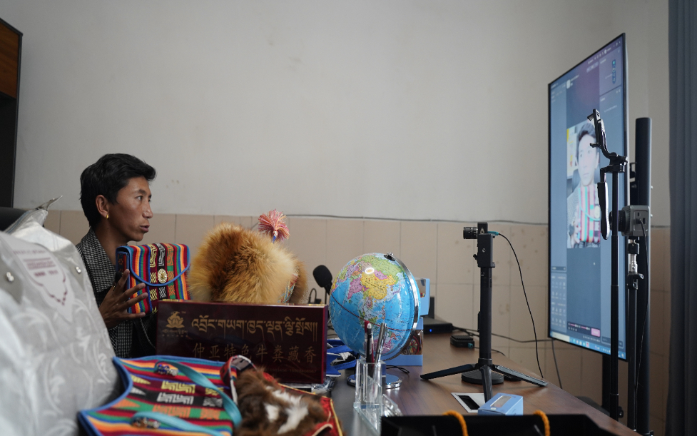 圖為(wei) 倉(cang) 秋多吉調試直播設備現場(8月24日攝)。新華網 謝炆圻 攝