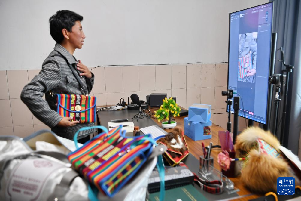 倉(cang) 秋多吉通過網絡銷售當地的產(chan) 品(8月24日攝)。新華社記者 張汝鋒 攝