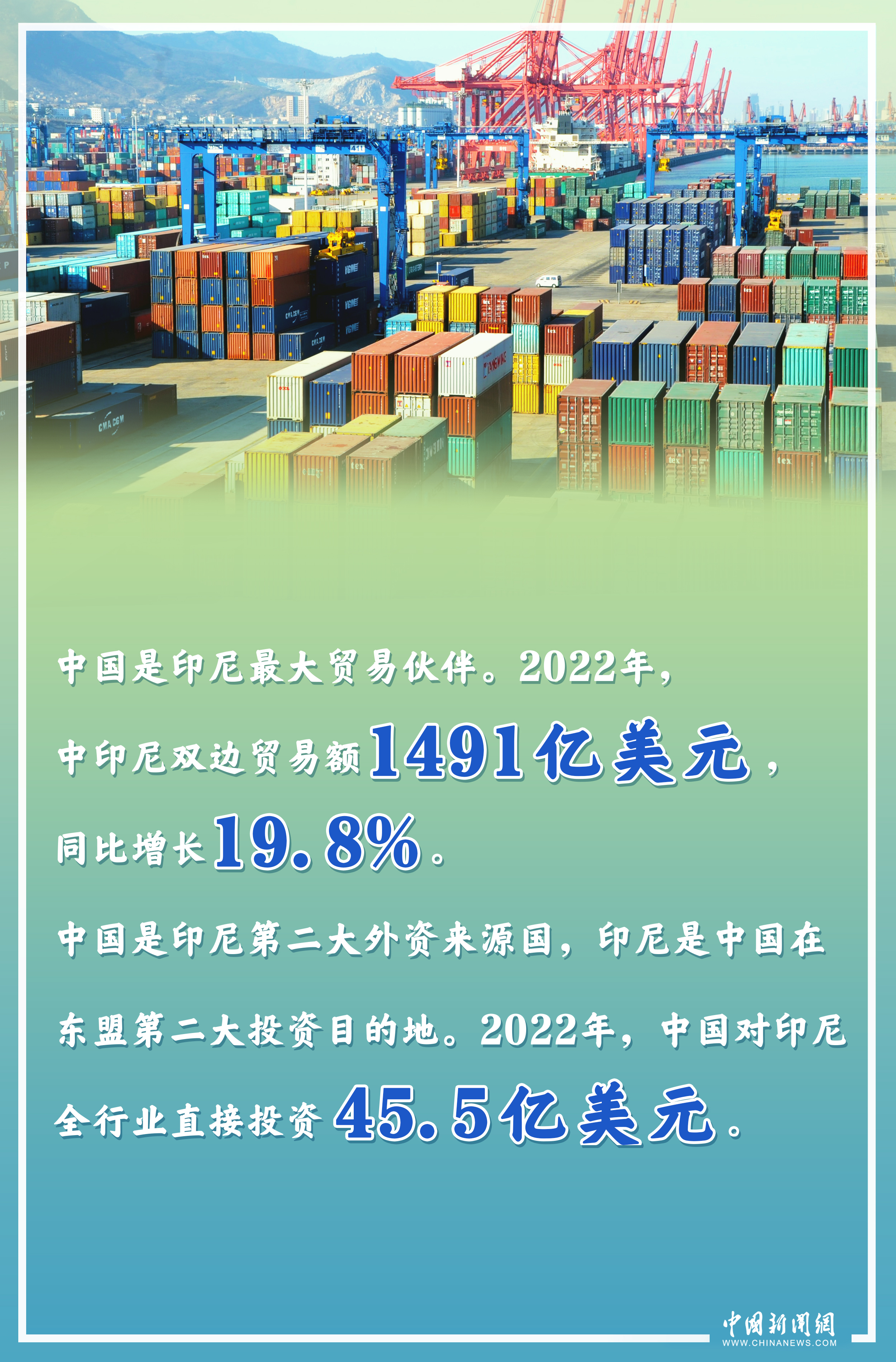 中國是印尼最大貿易夥(huo) 伴。2022年,中印尼雙邊貿易額1491億(yi) 美元,同比增長19.8%。中國也是印尼第二大外資來源國,印尼是中國在東(dong) 盟第二大投資目的地。2022年,中國對印尼全行業(ye) 直接投資45.5億(yi) 美元。