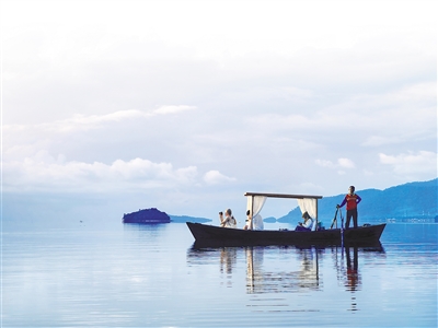 中國遊客在泰國南部甲米府蘭(lan) 塔島近海搭乘小船拍攝日出。 本報記者 張矜若攝