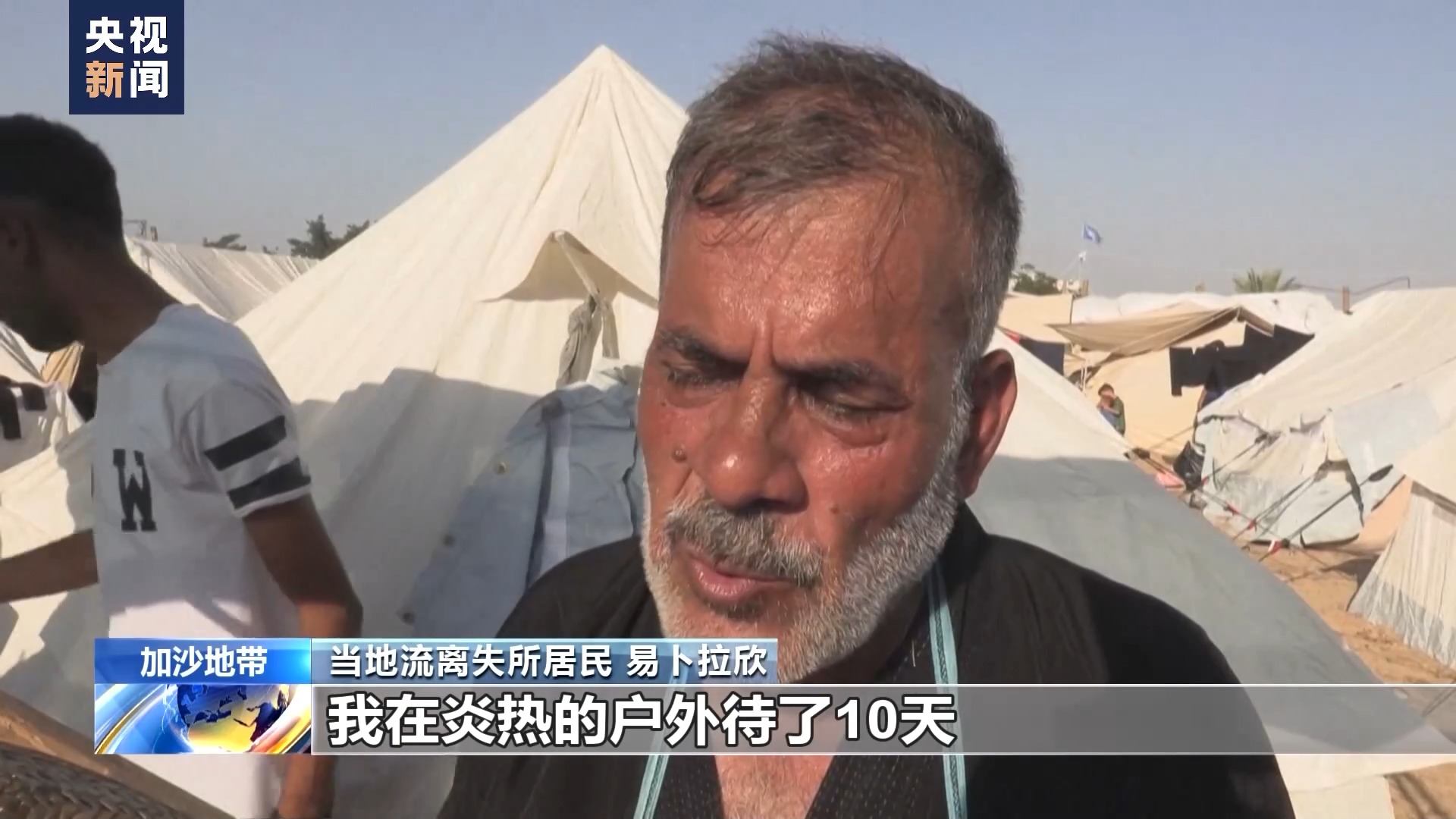 加沙地帶流離失所居民 易卜拉欣:為(wei) 了躲避轟炸、毀滅和殺戮,我和九名家人搭乘兩(liang) 輛車來到這裏避難。為(wei) 得到一個(ge) 帳篷,我在炎熱的戶外待了10天。