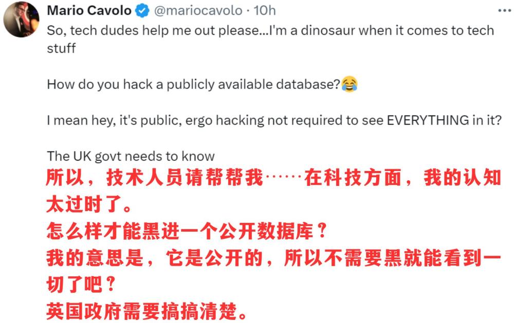 更重要的是,相關(guan) 政客言論中的邏輯謬誤也讓人不忍直視。脫口秀特意截取了英國議會(hui) 議員帕特·麥克法登的提問:“副首相為(wei) 什麽(me) 認為(wei) 中國政府會(hui) 去黑一個(ge) 公開數據庫?”這也讓美國作家馬意駿忍俊不禁: