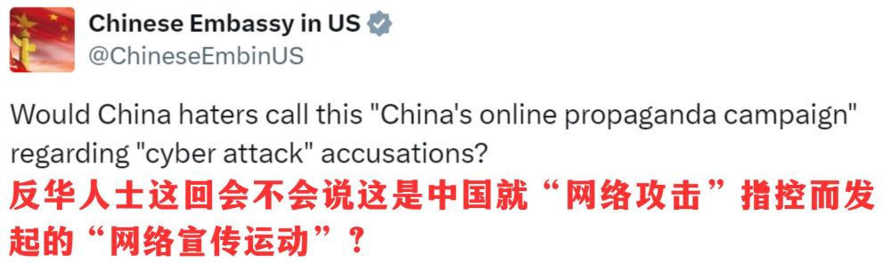 中國駐美大使館在社交平台轉發脫口秀時也幫忙發問: