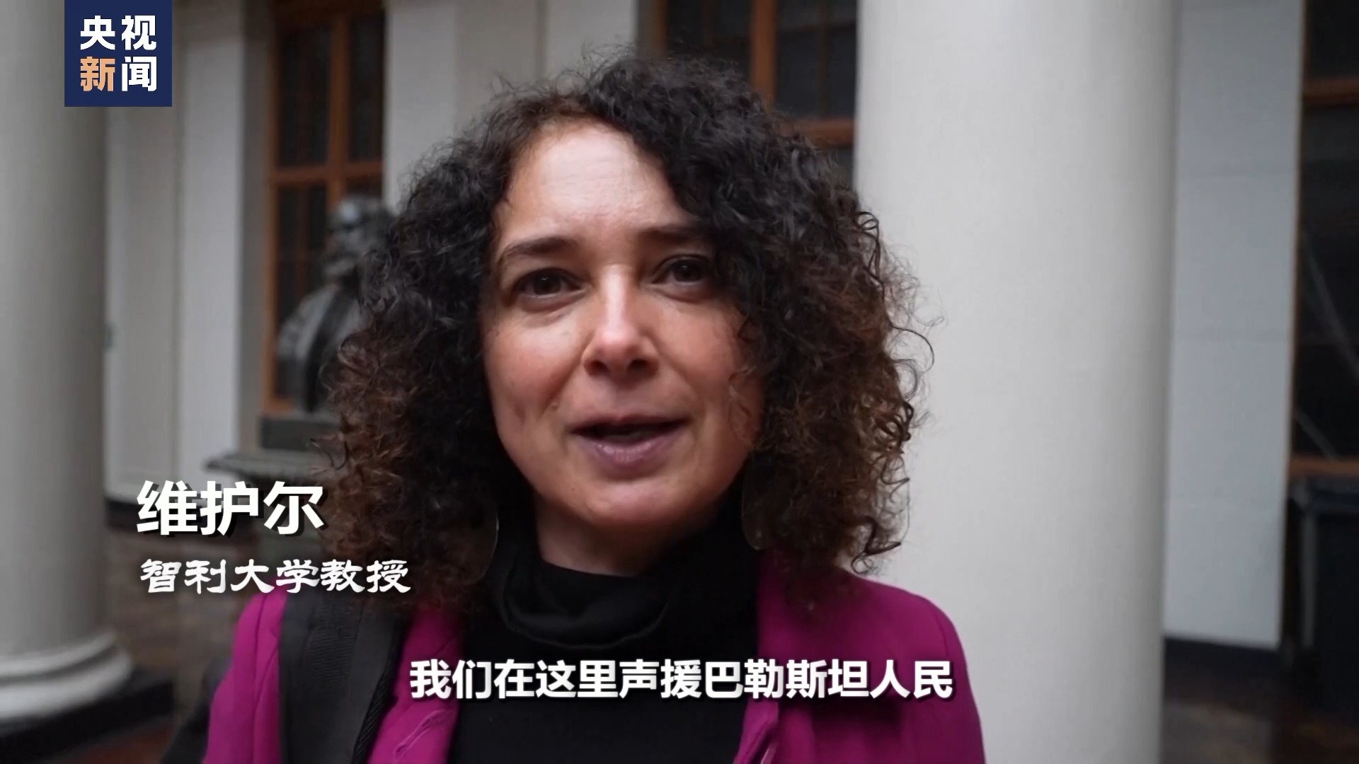 智利大學教授 維護爾:我們(men) 在這裏聲援巴勒斯坦人民,並譴責針對平民,尤其是婦女兒(er) 童所進行的人權侵犯。