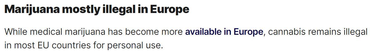即使在毒品問題同樣嚴(yan) 峻的歐洲,雖然醫用大麻越來越容易獲得,但在大多數歐盟國家,個(ge) 人吸食大麻仍是非法行為(wei) 。
