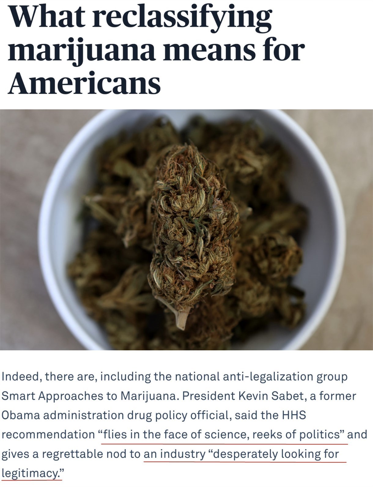 前白宮毒品政策官員凱文·薩比特批評稱,此舉(ju) “公然藐視科學,帶有政治意味”,等於(yu) 是承認了一個(ge) “拚命尋求合法性”的行業(ye) 。