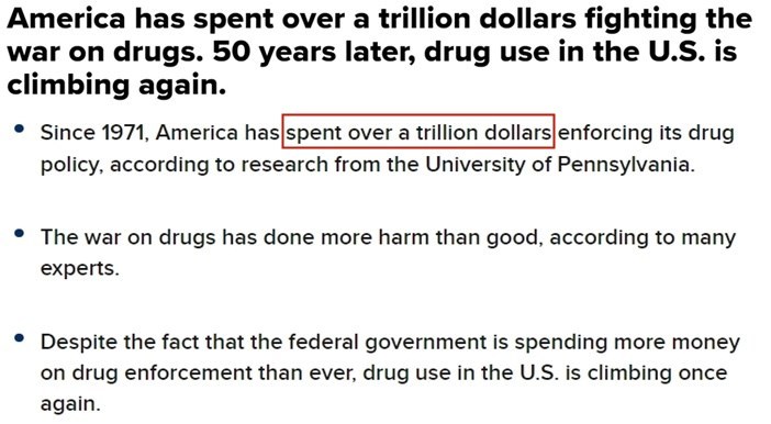 早在《聯邦管製物質法案》出台後的上世紀70年代,美國政府就曾高調對毒品“宣戰”,至今已為(wei) “禁毒”花了上萬(wan) 億(yi) 美元。