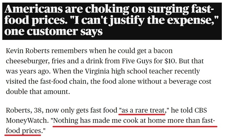 曾經人人吃得起的快餐對普通美國人的意義(yi) 不言而喻。但因為(wei) 頑固的通貨膨脹,這個(ge) 意義(yi) 現在已經變了味。