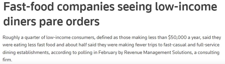 對於(yu) 美國一些知名快餐連鎖店來說,低收入顧客的流失意味著銷售疲軟,並可能導致利潤顯著下降。