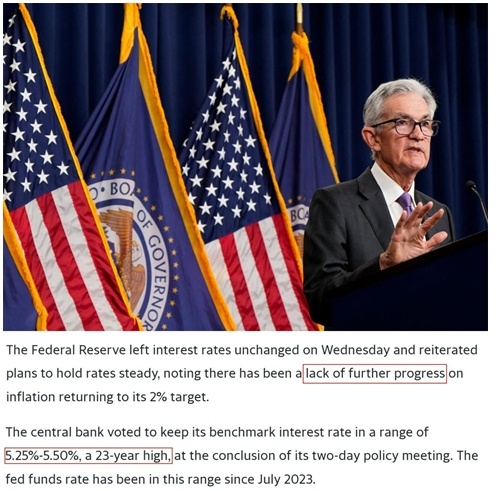 在本月初結束最新一次議息會(hui) 議後,美聯儲(chu) 決(jue) 定繼續將聯邦基金利率維持在5.25%-5.0%的目標區間,理由是在實現通脹目標方麵“缺乏進一步進展”。
