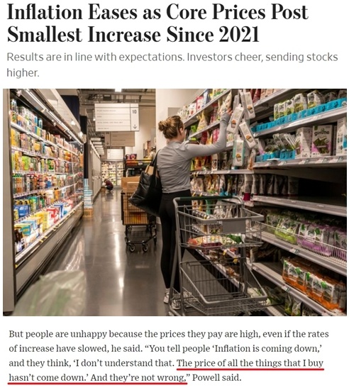 “你告訴人們(men) ‘通脹率正在下降’,他們(men) 會(hui) 想‘我不明白這是什麽(me) 意思,因為(wei) 我買(mai) 的所有東(dong) 西的價(jia) 格都沒有降下來’。事實上,他們(men) 想得沒錯。”