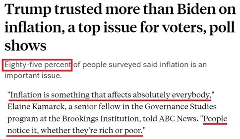 用布魯金斯學會(hui) 高級研究員卡馬克的話說,“通脹是絕對會(hui) 影響所有美國人的東(dong) 西。人們(men) 都會(hui) 注意到通脹,無論他們(men) 富裕還是貧窮”。