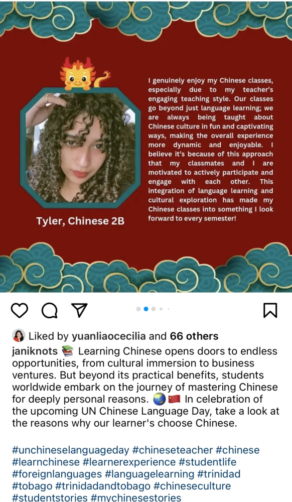 第十五個(ge) 聯合國中文日和第五個(ge) “國際中文日”舉(ju) 辦期間,中外語言交流合作中心與(yu) 中國日報網聯合發起 “國際中文日”係列線上活動,鼓勵大家講述、分享與(yu) 中文相遇的精彩故事,半個(ge) 月內(nei) 活動參與(yu) 者覆蓋全球五大洲近70個(ge) 國家和地區,包括英國、意大利、澳大利亞(ya) 、美國、巴西、日本、韓國、泰國、老撾、迪拜、喀麥隆等,作品超2000件,閱讀量超1000萬(wan) ,在中國和其他國家主流社交媒體(ti) 平台掀起“中文日”熱潮,吸引了海內(nei) 外網友的廣泛關(guan) 注。