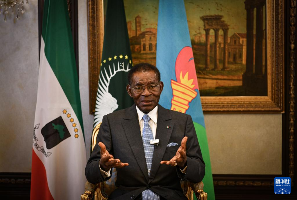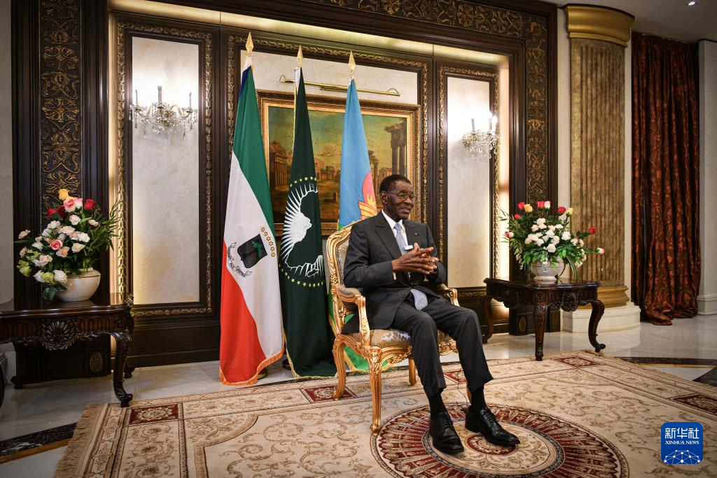5月22日,赤道幾內(nei) 亞(ya) 共和國總統奧比昂在首都馬拉博人民宮接受新華社記者專(zhuan) 訪。新華社記者 韓旭 攝