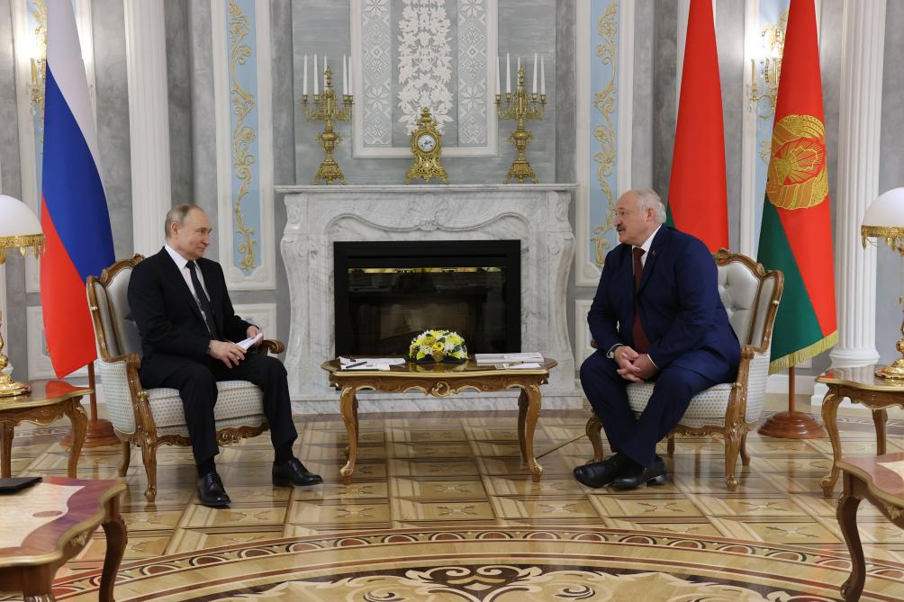 5月24日,俄羅斯總統普京(左)與(yu) 白俄羅斯總統盧卡申科在白俄羅斯首都明斯克舉(ju) 行會(hui) 談。新華社發(白俄羅斯總統網站供圖)